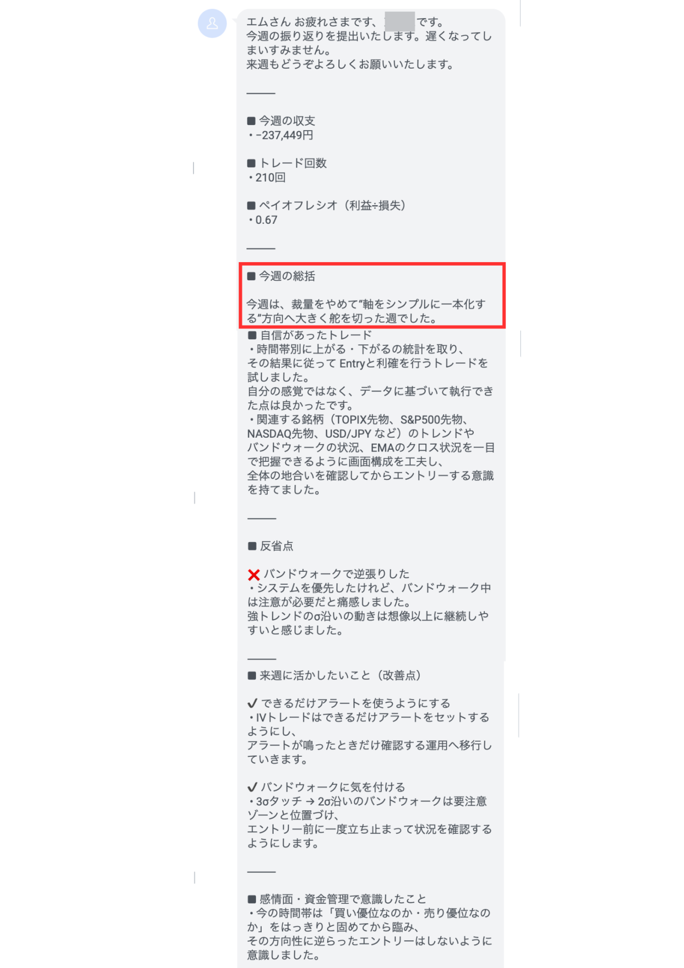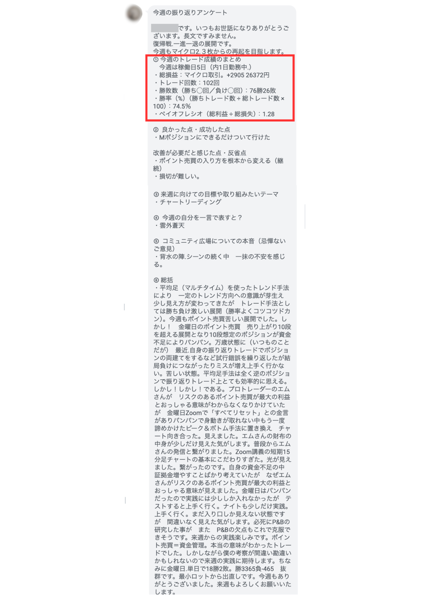 トレードの振り返りアンケートや