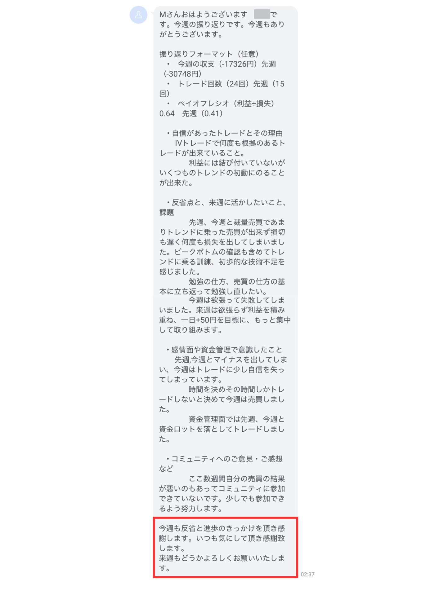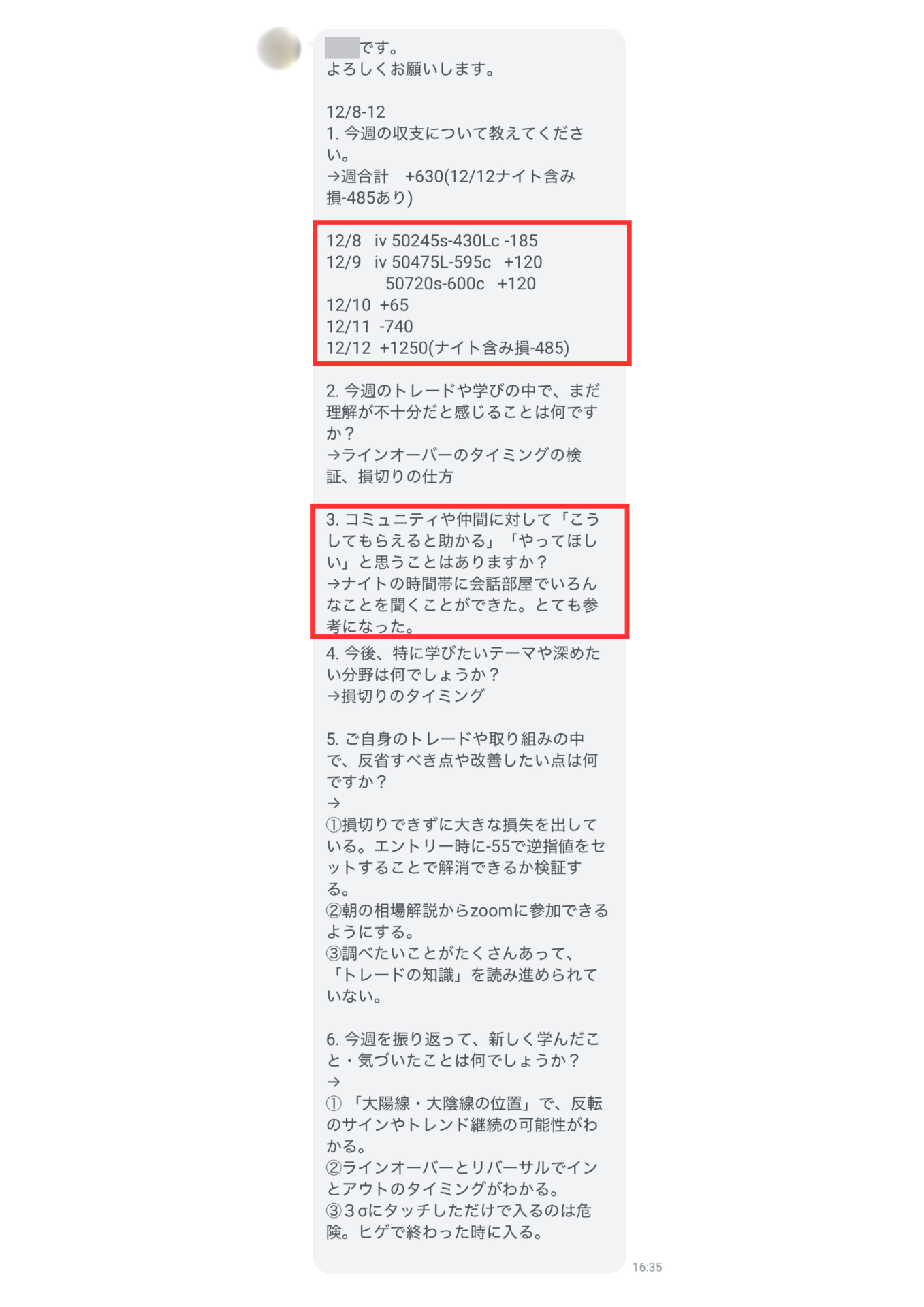 毎週1回、トレードの振り返りアンケートを通じて