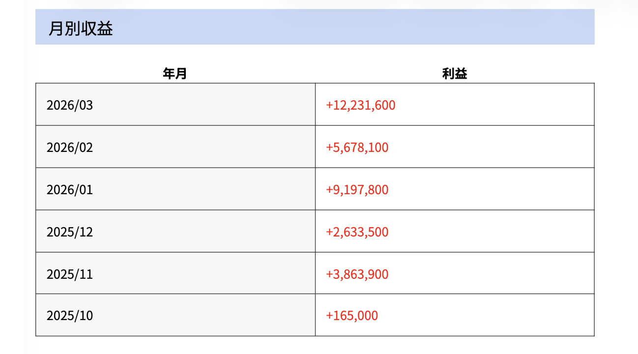 ロジックを微調整しながら積み上げてきた全期間の配信実績です。